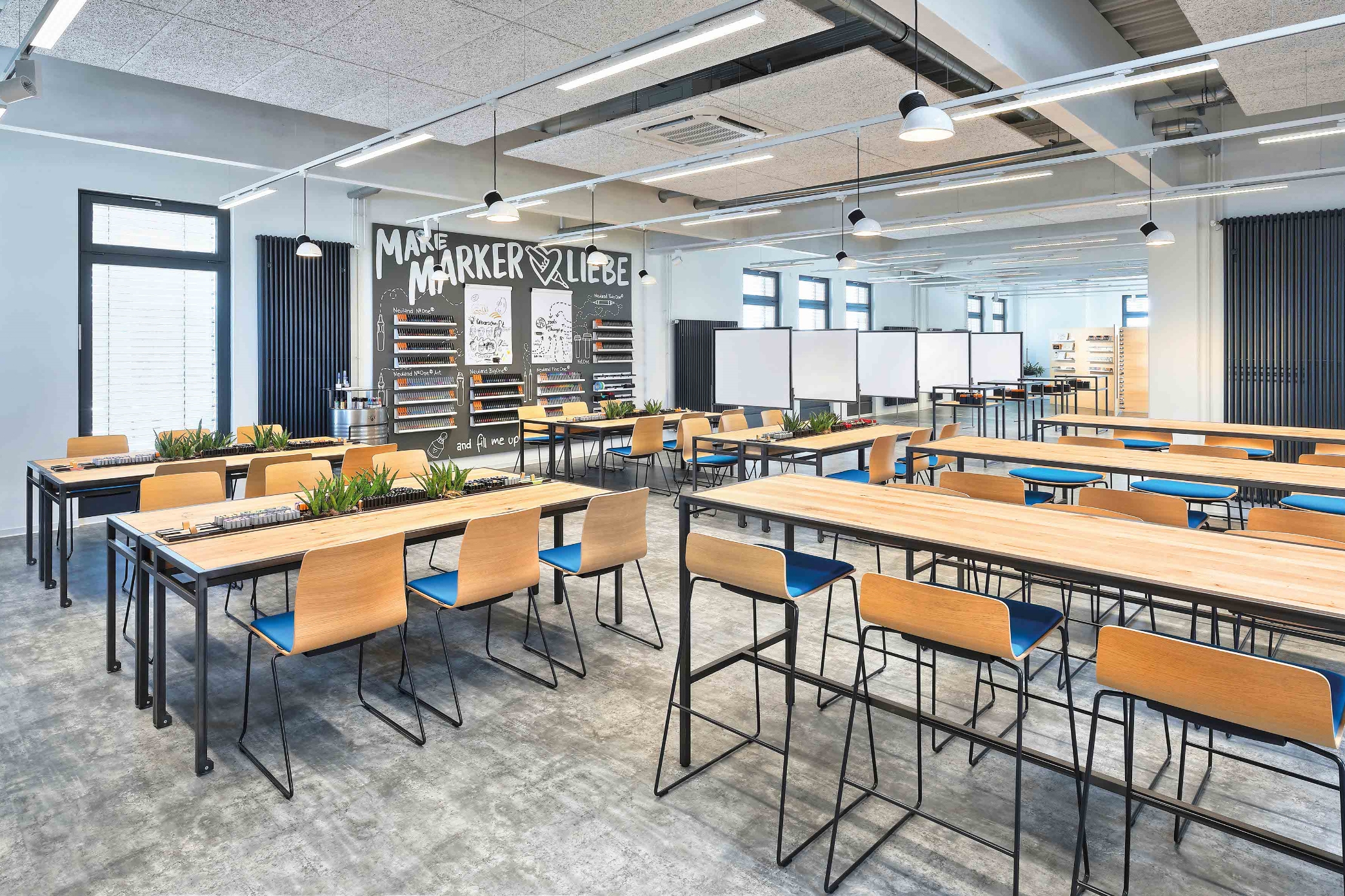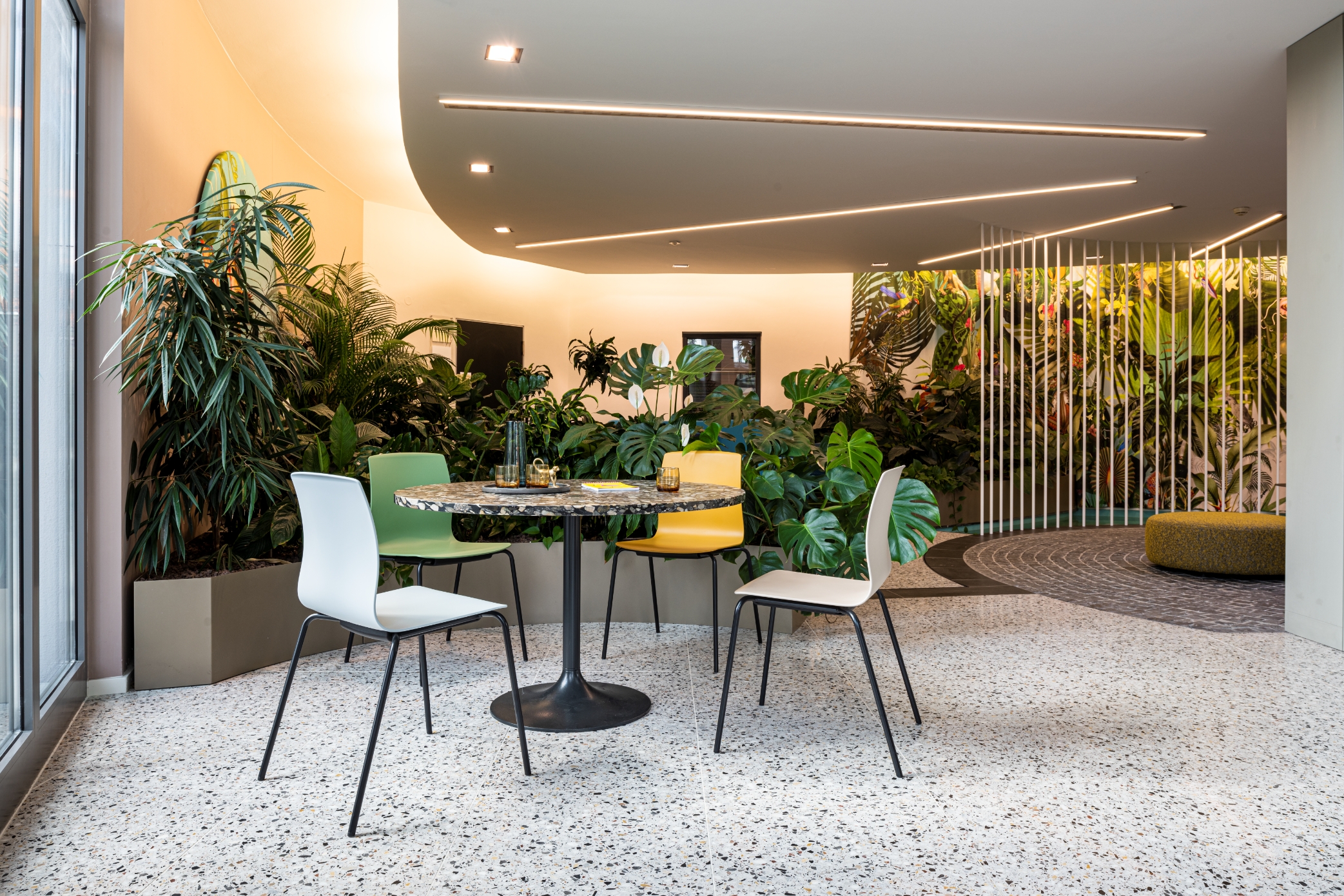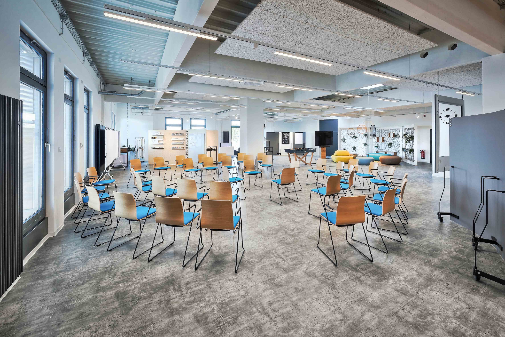 Let’s meet! Accanto alle classiche zone meeting negli uffici moderni vi sono anche zone pause, zone di reception e zone mensa oppure zone centrali per un veloce scambio tra colleghi e il lavoro quotidiano.