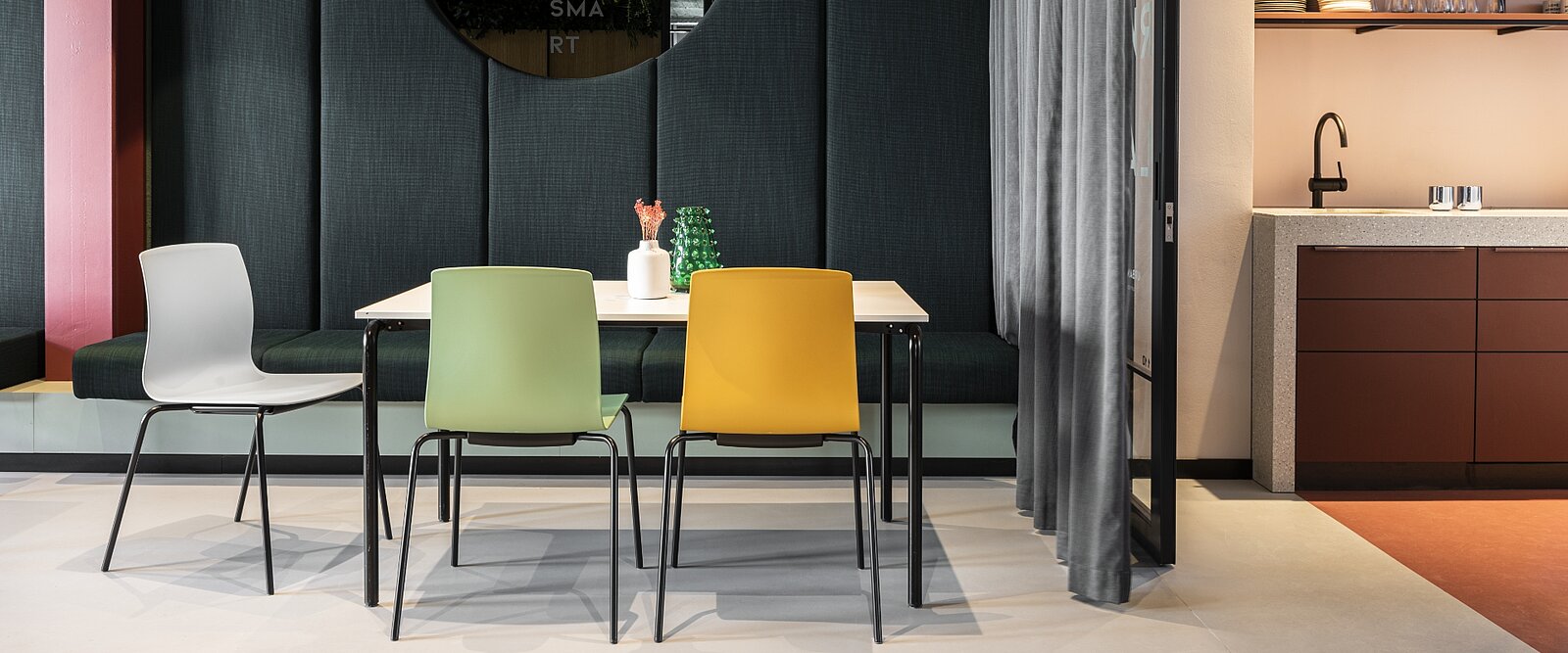 Fiore convince con funzionalità e comfort e porta una ventata di novità nell’arredamento dei moderni edifici per uffici.