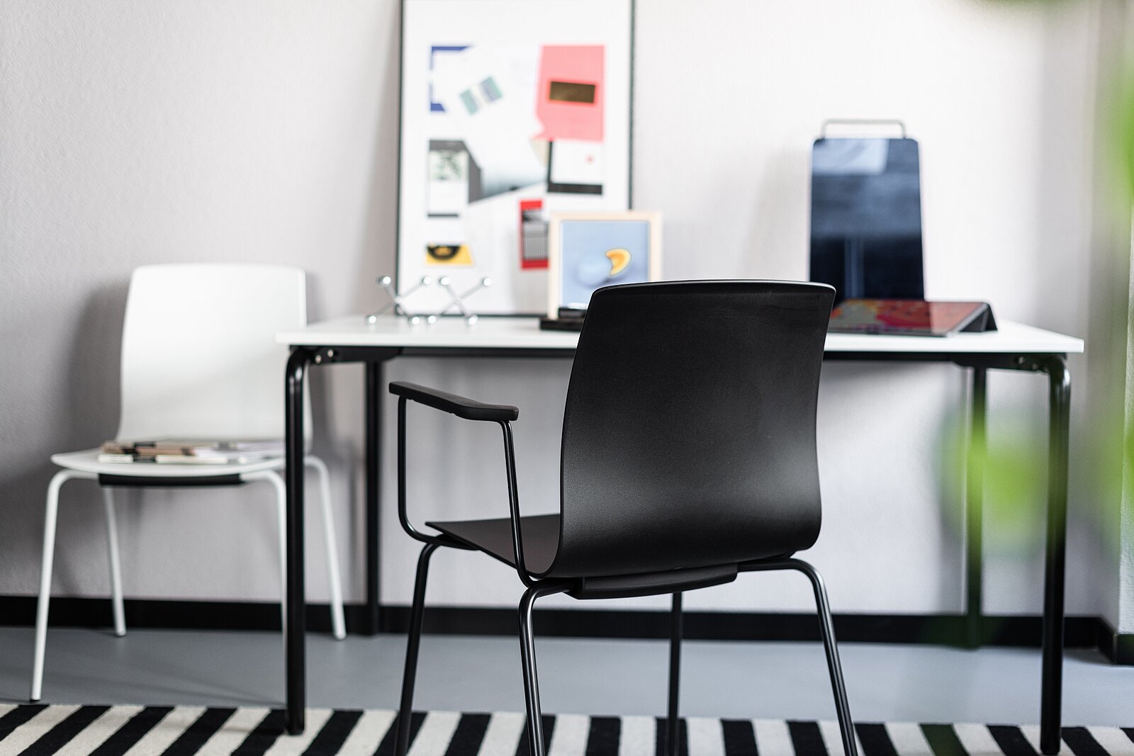 Fiore si inserisce con discrezione e eleganza nell’ambiente accogliente di un home office e fa bella mostra ovunque con il suo telaio nero oppure bianco rivestito in polvere.