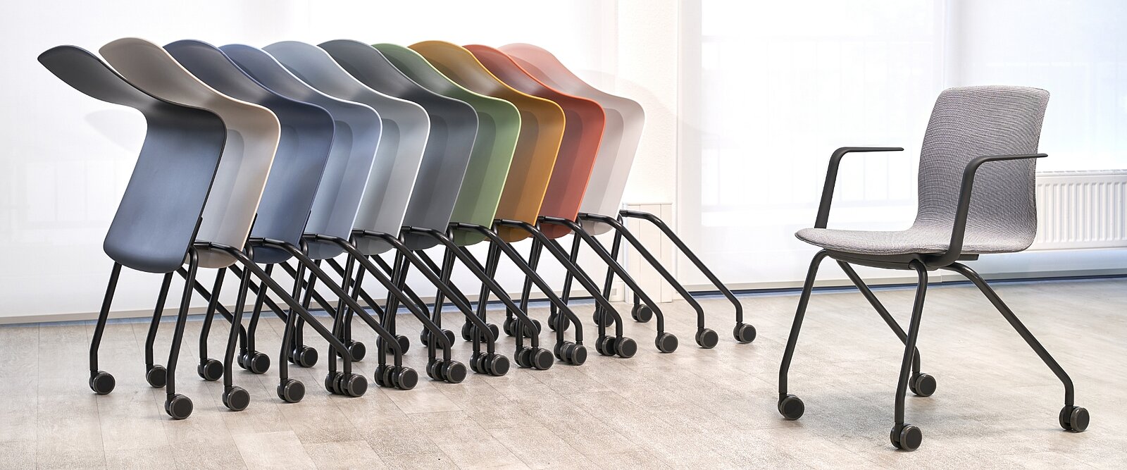 Il New Work richiede strutture flessibili. Le sedute e i tavoli Fiore nesting sono il vostro partner versatile per I progetti agili: smart and functional, mobili su ruote e impilabili orizzontalmente per salvare spazio.