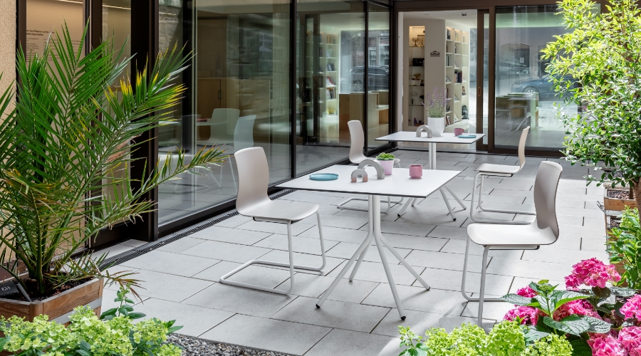 Tutto quello che serve alla vostra azienda. Da una veloce pausa caffè a un pranzo vero e proprio: Fiore outdoor porta un tocco di colore e favorisce la conciliazione tra vita privata e lavoro nel vostro ristorante aziendale.