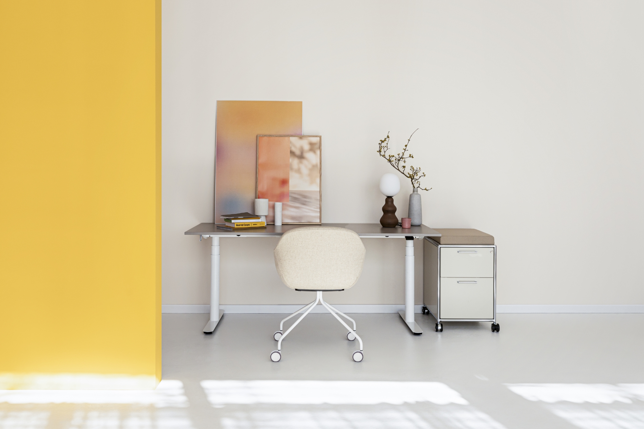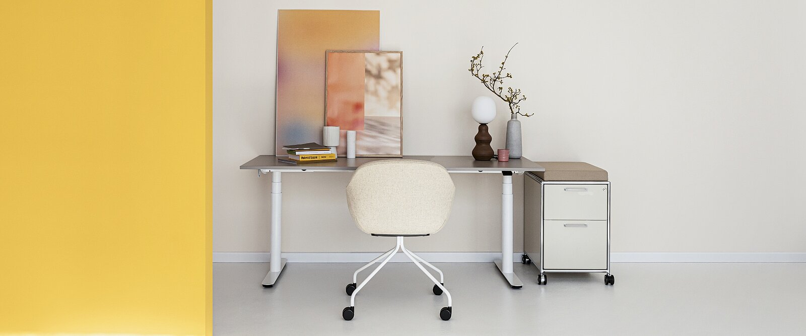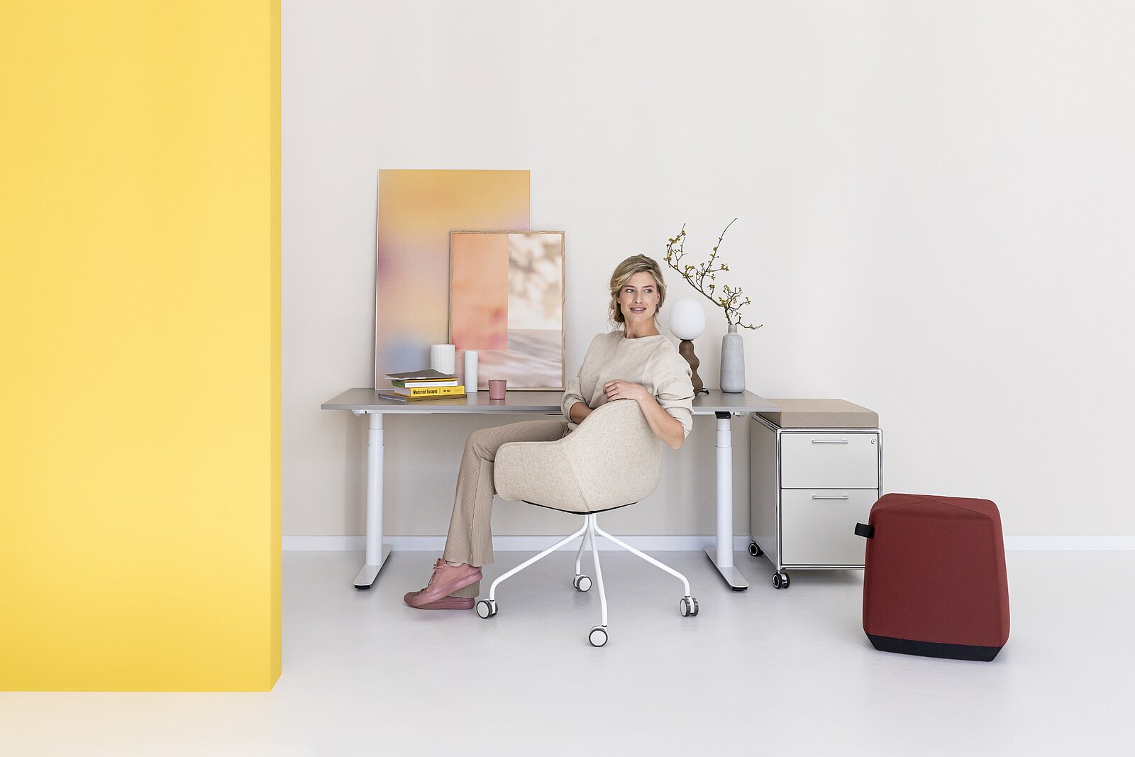 Massimo comfort nell’Home Office: il modello con base a quattro razze e rotelle aggiunge dinamismo all’ufficio in casa, consentendo di ricavare un angolo di lavoro comodo e accogliente.