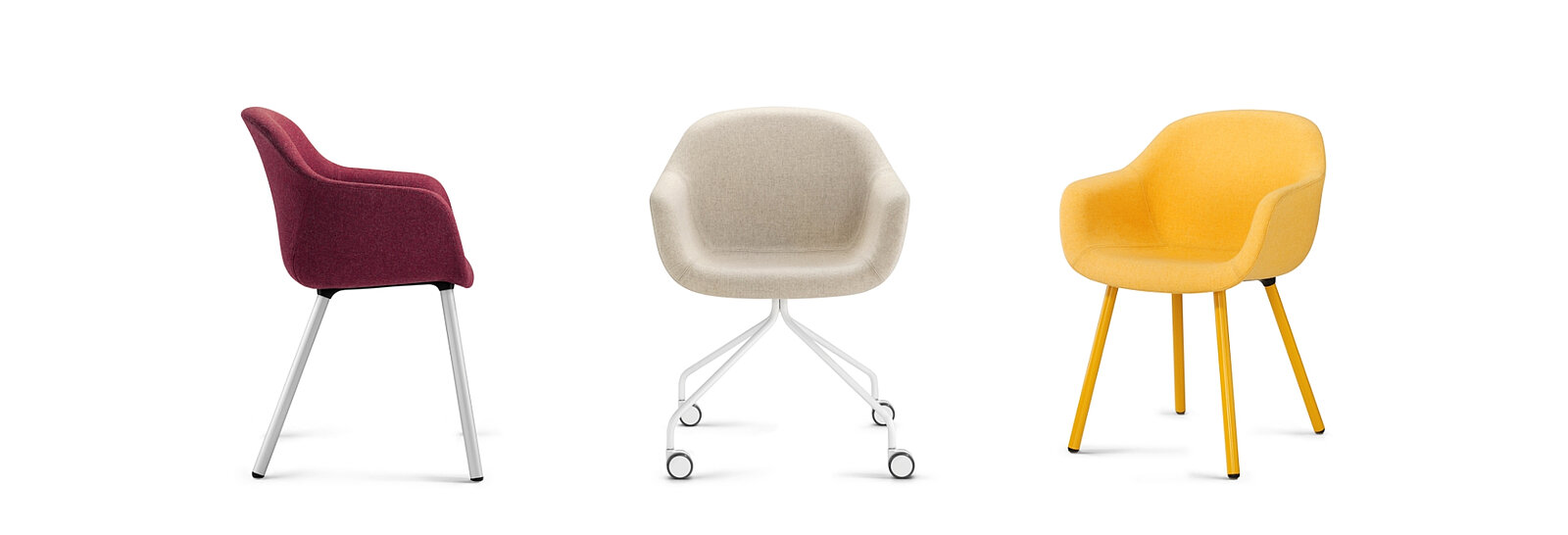 Un elegante telaio in acciaio, gambe colorate sempre in acciaio oppure un modello mobile su rotelle? Abbinate le numerose versioni di telaio con la comoda scocca interamente imbottita dalle forme organiche.